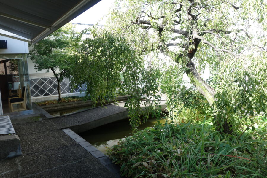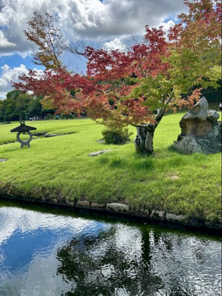 敷地中央の大きな池は「沢の池」。 穏やかな水面に、雲が流れる様子が反射します。