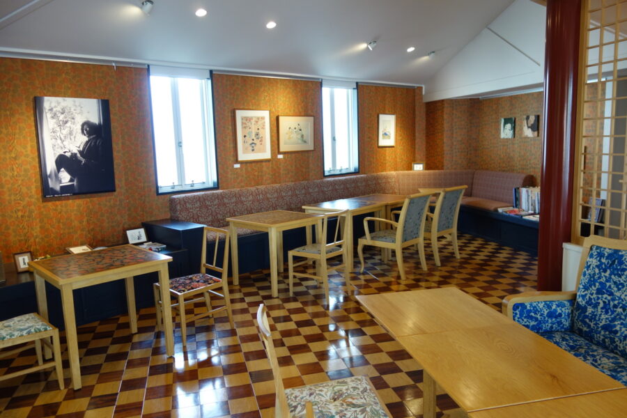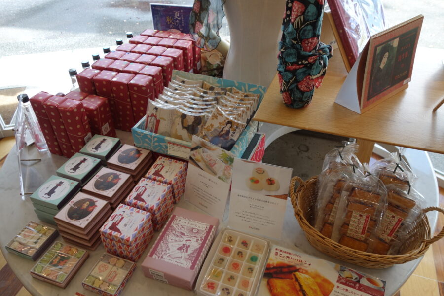 小洒落たグッズが展示・販売されています。 併設のカフェもおしゃれな感じです。 ゆっくりできそうなスペースです。