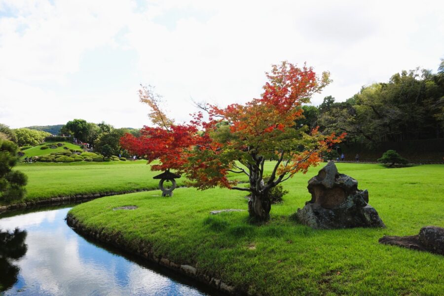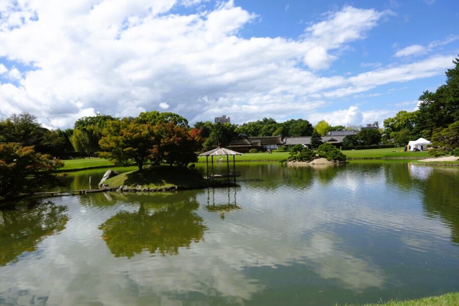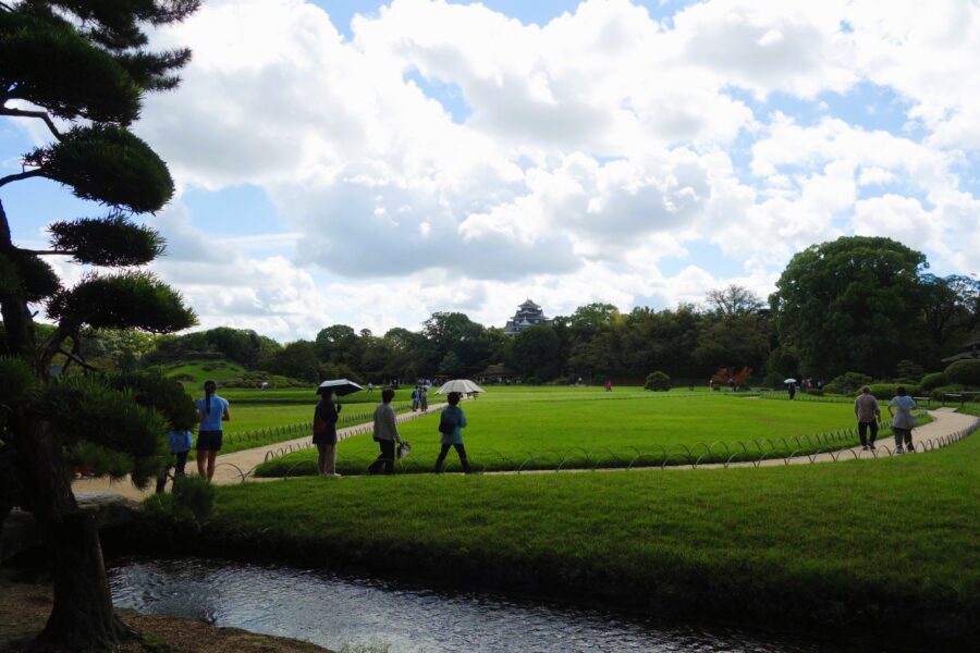 後楽園は江戸時代の岡山藩主・池田綱政が家臣に命じて造らせた大名庭園で、1700年頃に完成したと言われています。 広い芝生と池、小山がありとても見通しのよい庭園です。 各所でいろいろな景色を楽しむことができる「回遊式庭園」となっています。 後楽園の名前は中国の古い言葉「先憂後楽(せんゆうこうらく)」に由来し、「人々の幸せのあとに楽しむ庭」という意味があります。 後楽園は「偕楽園(水戸市)」「兼六園(金沢市)」とともに日本三名園の一つです。