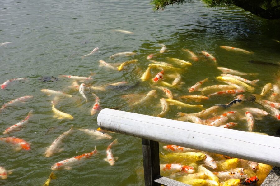 エサをもとめて鯉ががっぷがっぷと集まっていました。