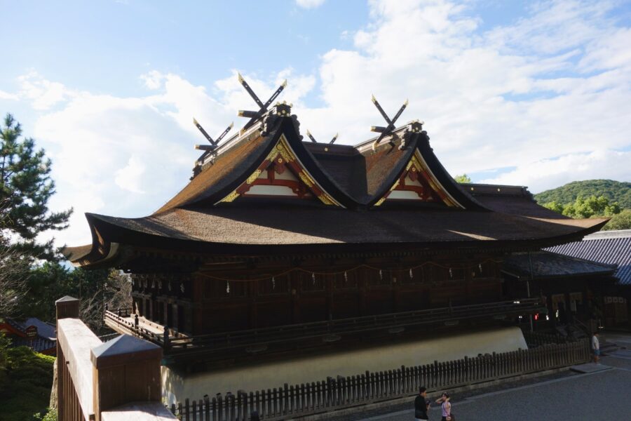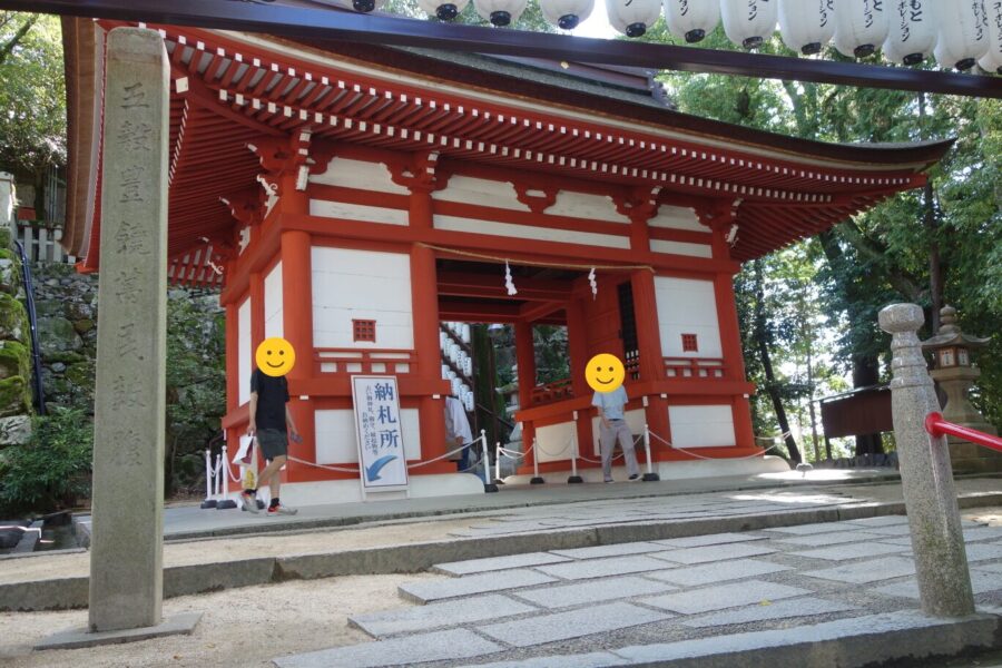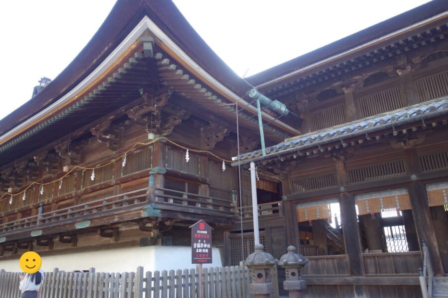本殿を正面から撮るのを忘れておりました。 暑くてだいぶバテバテです。 これは裏面から。 「比翼入母屋造」、全国唯一なので「吉備津造」とも称される建築様式です。 1425年再建…室町時代です。 再建が室町時代って…古い。