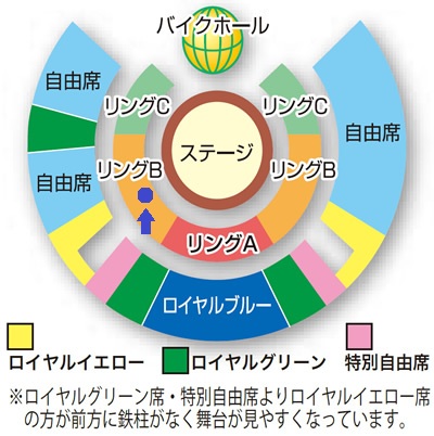 • 「リングC」よりは「ロイヤルブルー」の方が正面で見やすいかも。 ただ後ろの方の席になるとステージが遠く感じると思います。