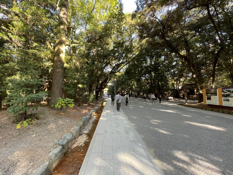 ちなみに家から歩いて熱田神宮の本殿前までAppleWatch計測で4.8km。 真夏に歩くと倒れそうになりますが、冬になると道中をキョロキョロ見て回りながら気持ちよく歩けます。 帰りは地下鉄でラクラク~♪